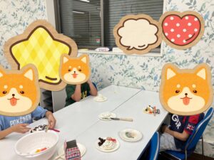 鼻や口にクリームやチョコが付くぐらい大きくケーキを頬張ったり、おかわりもたくさんしましたね!もう食べれないと言うくらいたくさん頂きました。