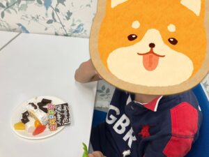 ケーキにはホイップやチョコレート、フルーツのを盛り付けた後、みんなでお祝いの歌を歌いました。