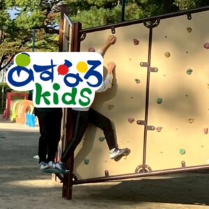 ボルダリングのように壁を伝って移動する遊具では、職員も一緒になって挑戦しました。