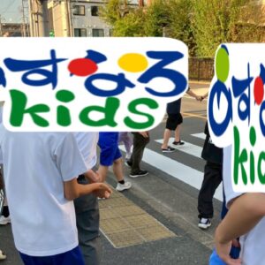 あすなろKidsからの避難場所である豊国中学校への経路や、避難の流れについて、職員と一緒に子どもたちと確認しました。